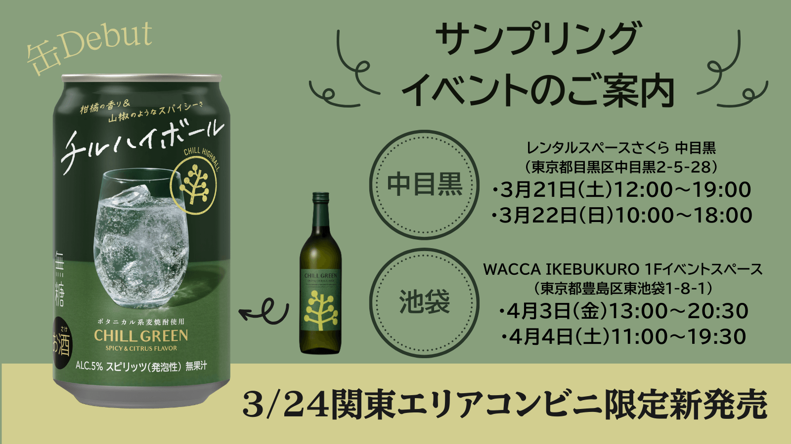 イベントの様子をSNSに投稿した方に「CHILL GREEN」のロゴが入ったトートバッグや箸置きなどが当たる巨大ガチャを楽しんでいただきます。
