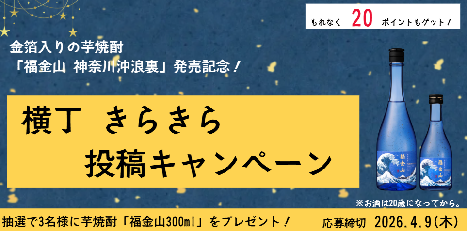 華やかな金箔にちなんで「横丁きらきら投稿キャンペーン」と題し、コメント投稿のみで簡単にご参加いただけるキャンペーンを実施中!